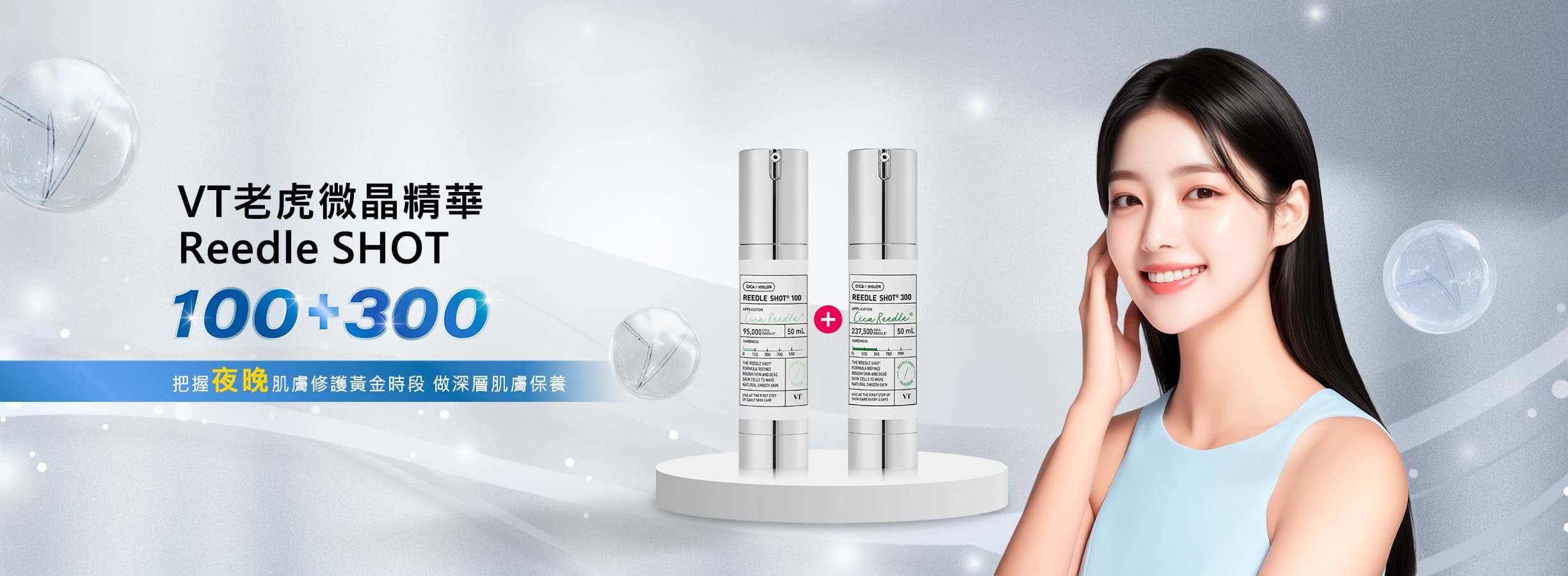 【iMeuu愛美悠】VT COSMETICS微晶精華100+300夜晚進階修護套組 積雪草 玻尿酸 綠蜂膠 夜間用
