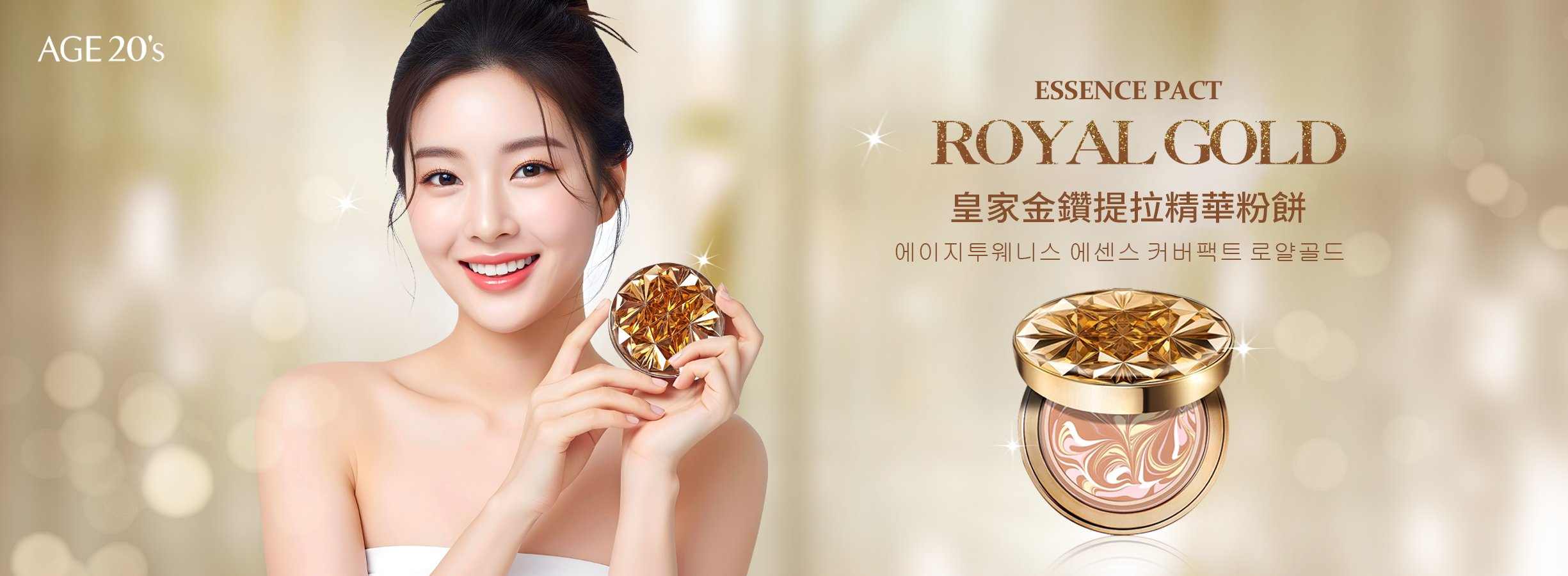 【iMeuu愛美悠】Age20's皇家金鑽提拉精華粉餅+上妝神器雙粉撲組 空姐最愛 舒芙蕾粉撲 乾濕兩用