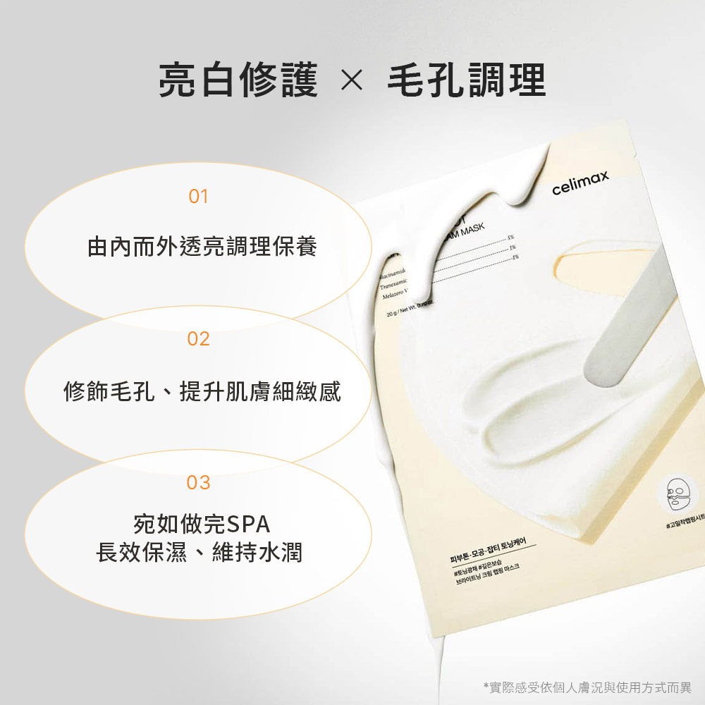 【iMeuu愛美悠】Celimax毛孔調理勻亮乳霜面膜(5片入) 透亮煥白 水潤透亮 滋潤 面膜霜