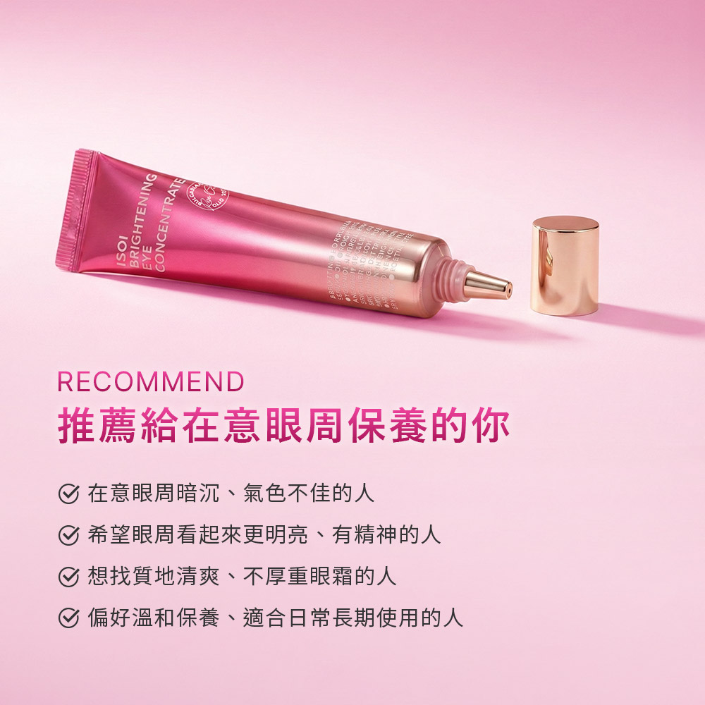 眼周肌膚是全臉最薄、最脆弱的部位。ISOI 保加利亞玫瑰眼周光采修護霜以天然植物萃取為基底,即使是容易燻眼、敏感的膚質也能安心使用,在溫和不刺激的狀態下,享受高效的亮白與滋養護理。