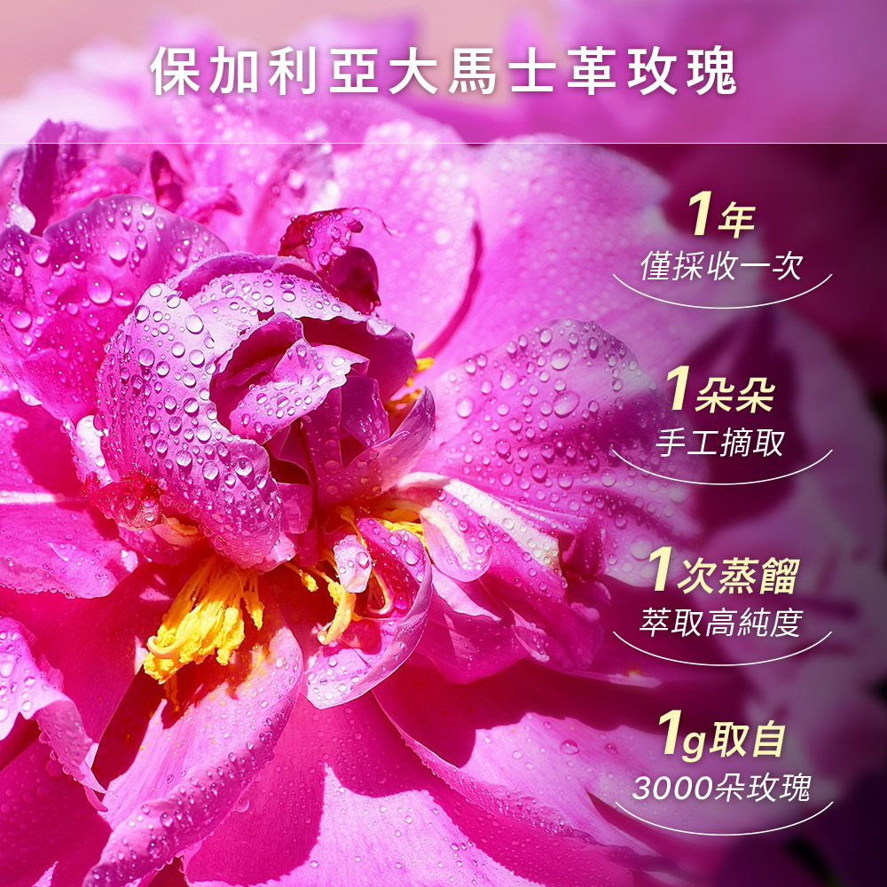1.本產品含有天然玫瑰精油,顏色與氣味可能會隨時間或批次略有差異,此為自然現象。