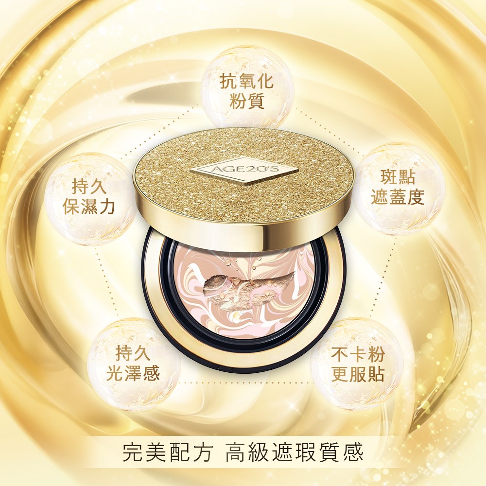 韓系底妝巔峰|Age20's 奢華金安瓶精華粉餅(1空殼+3蕊)
