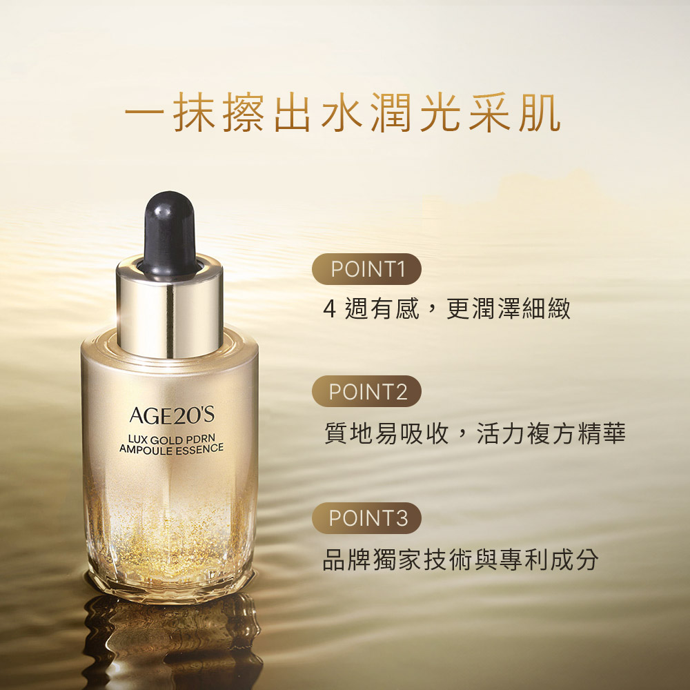 ⭐拋開瓶瓶罐罐,一滴到位:專為追求「日夜防護」與「極致效率」的現代人設計。注入AGE20's 獨家研發的高濃度PDRN精華,看似濃潤的安瓶精華,接觸肌膚瞬間化為水感,無流動感的細密質地能瞬間被肌膚吸收,清爽不黏膩、滋潤不悶厚。只需一個步驟,取代繁瑣程序,完成深層補水與彈力供給。